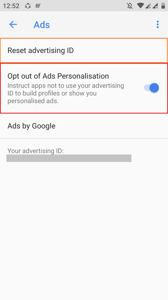 You have successfully opted out of Ads personalization on Android. Your Advertising ID will no longer be used by apps or the Google Ad network to target advertising for you.
